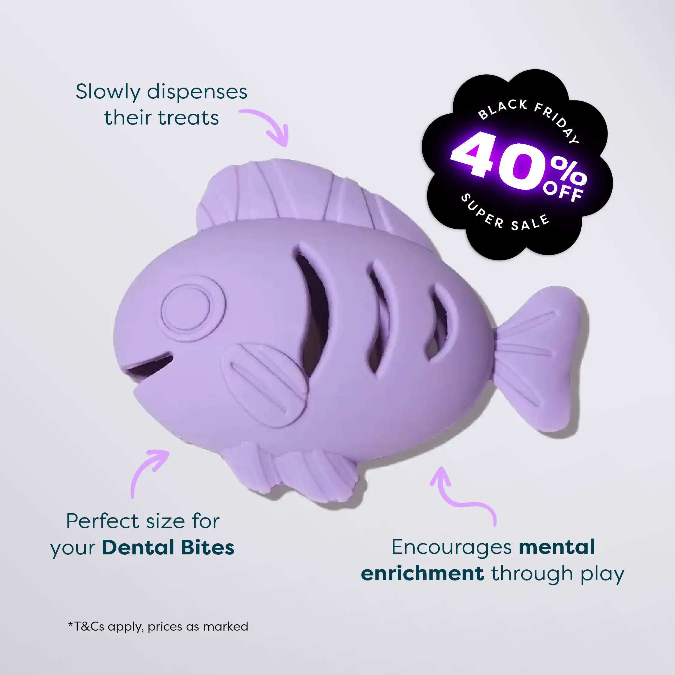 Make playtime exciting and rewarding with the Bell & Bone Interactive Cat Treat Toy – Fish! Designed for enrichment and dental health, this fun, fish-shaped toy lets you hide Bell & Bone Cat Dental Bites inside, encouraging your cat to play, chew, and engage their natural instincts.