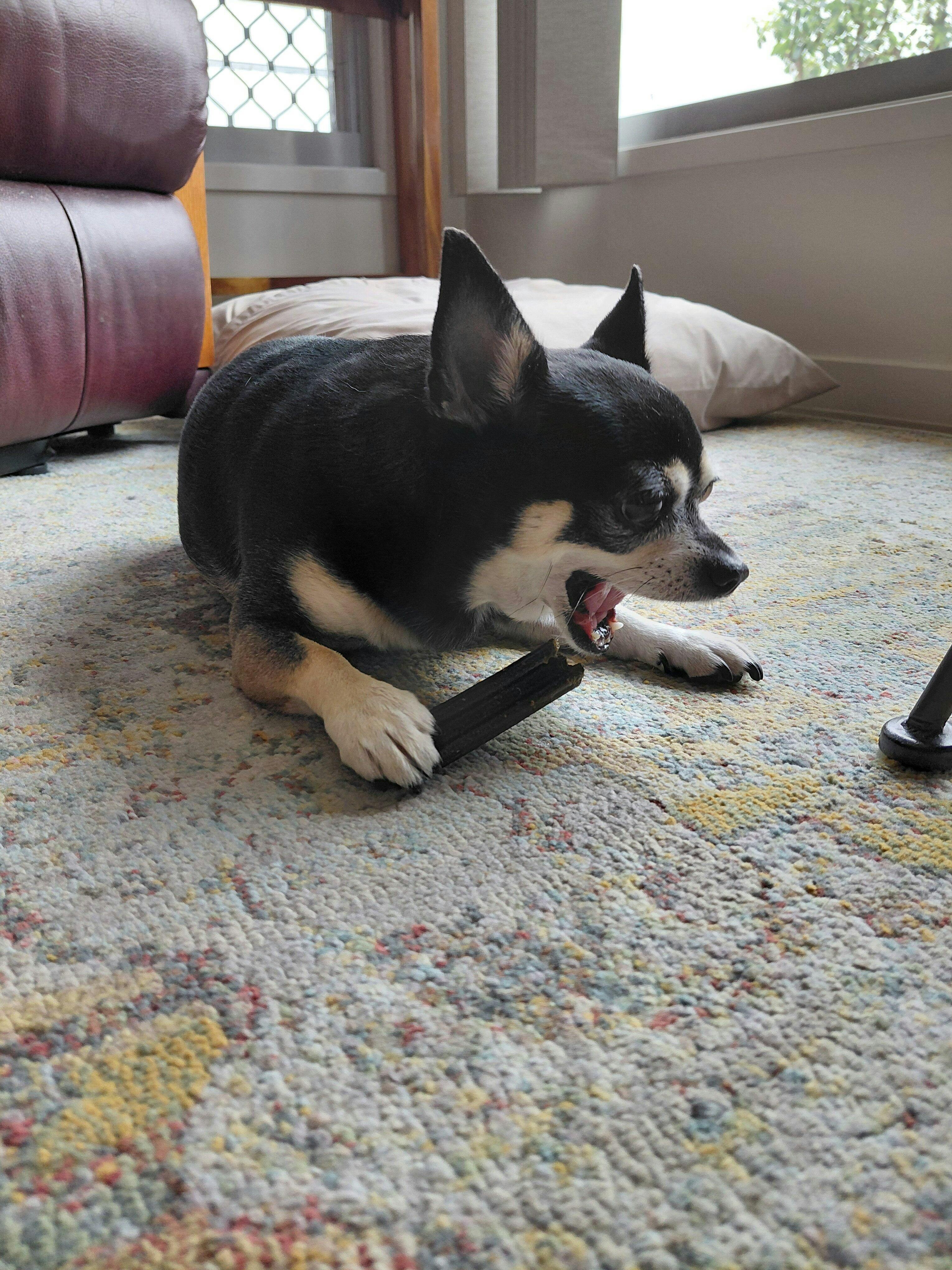 You could also roll some healthy treats and dental sticks into a towel and watch them dig in! These activities are great for mental stimulation—they'll keep your pup busy and tap into their natural sniffing instincts.