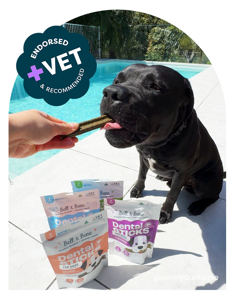 Unlike many dental chews, Bell & Bone Dental Sticks are made in Australia using 100% natural ingredients with no grains, fillers, or artificial flavours. Each Dental Stick is meat-first and filled with superfoods and oral actives to help clean teeth, freshen breath, and support overall health, all while tasting super delicious!