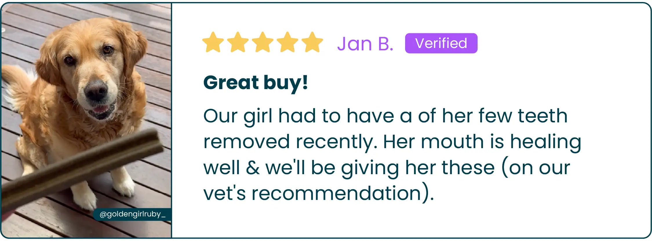 Our Dental Sticks are meat-first ingredient and super tasty, but we totally get that some pups can be extra picky! A few tips that usually do the trick include cutting them into smaller pieces and adding them to their favourite meals, popping smaller pieces into an enrichment toy to make it fun, or adding a little of their favourite spread like peanut butter or cream cheese. Once your pup gets familiar with the taste, try reintroducing the whole stick as a daily chew, they always come around!